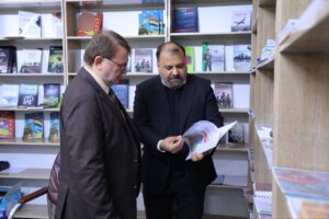 زيارة الحاج معين الكاظمي إلى جناح معهد البحوث والدراسات الاستراتيجية – رئاسة اركان هيئة الحشد الشعبي في مخيم شهداء قادة النصر الفني الثقافي الثالث في نصب الشهيد